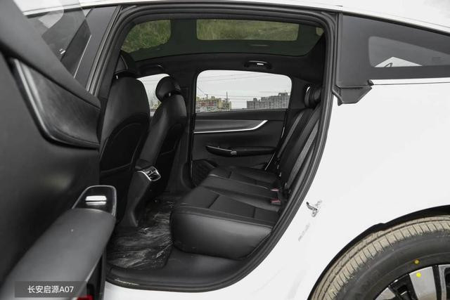 除了三电方面的表现外,空间就是家庭出行的重点了。同样地,两台车都在这个价位下达成了领先,像身为C级车的长安启源A07,4905/1910/1480mm的长宽高再配上2900mm的轴距,光看身形就足够修长,更重要的是,它还是一台车身弧顶更高的掀背车。也是因此,车辆不光能做到二排轻松跷二郎腿,180cm的乘客入车头顶也没有任何问题;而且车辆还为前排提供了加热通风功能,长途驾车会更加舒适。